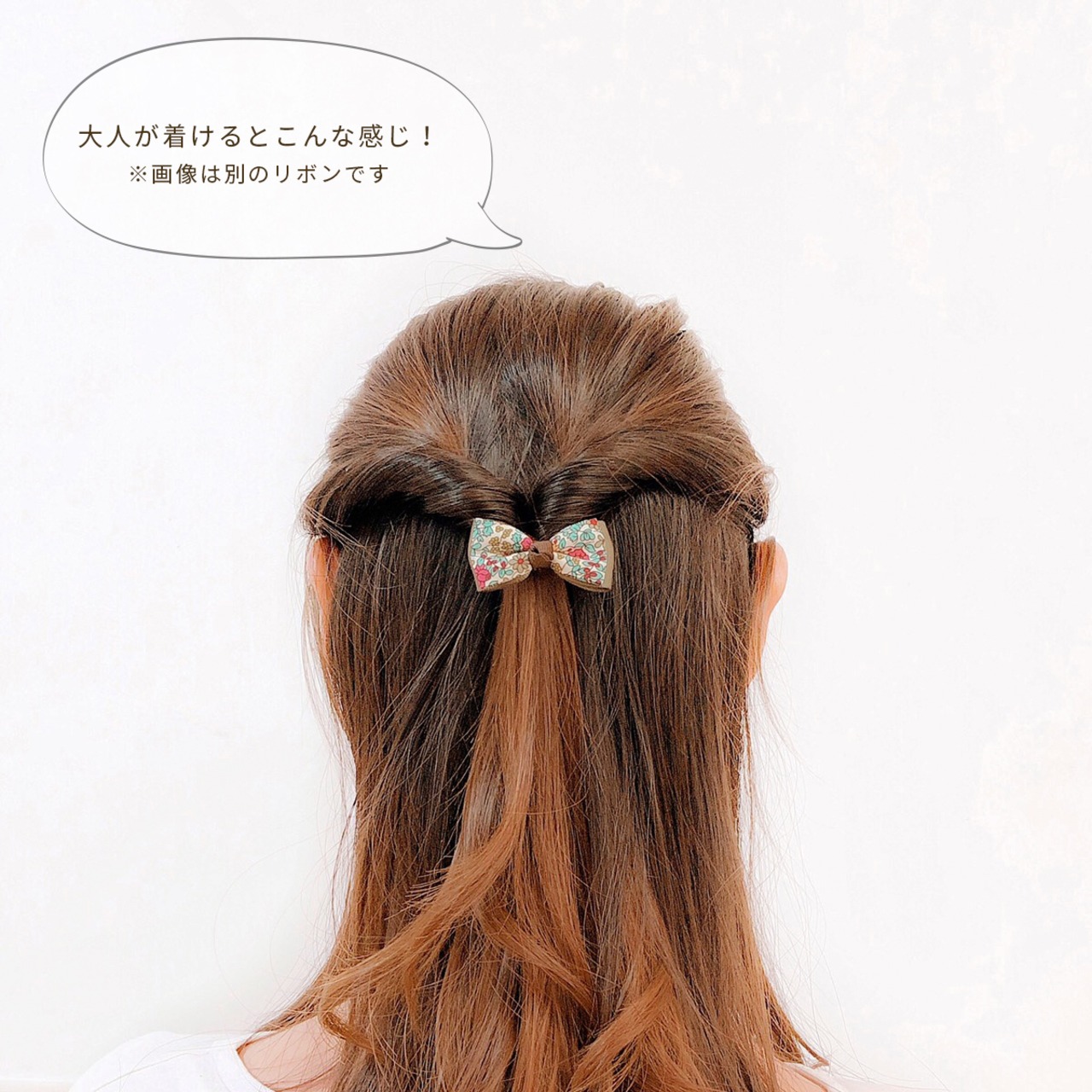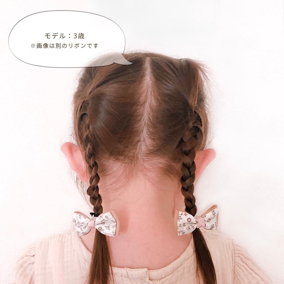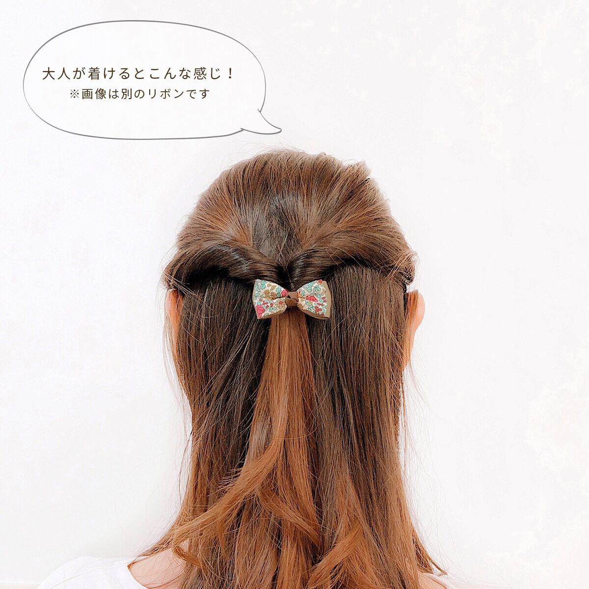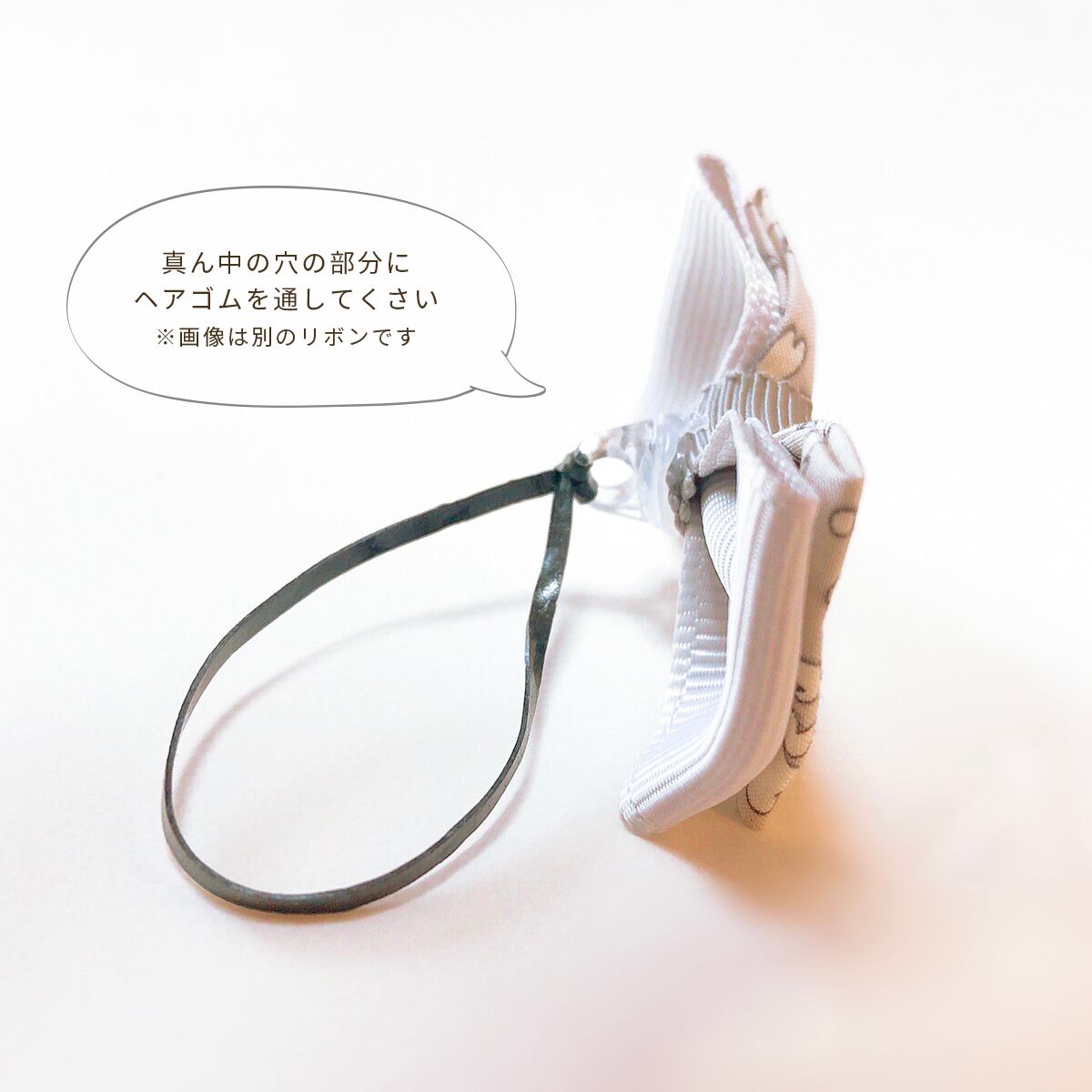 ヘアゴムの場合はリボン部分を引っ張るのではなく、ゴムの部分を伸ばして使用してください。